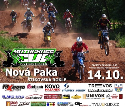 V Nové Pace v areálu Štikovská rokle bude v sobotu 14. října zakončen letošní seriál Motocross cup, samozřejmostí je bohaté občerstvení a super podívaná. Začátek závodu ve 12.15, vstup zdarma. Samostatná pozvánka