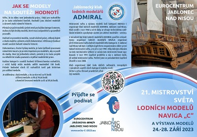 Už 21. mistrovství světa lodních modelů NAVIGA Sekce C bude v Jablonci nad Nisou spojené s výstavou modelů pro veřejnost ve dnech 24. až 28. září. Podrobná pozvánka