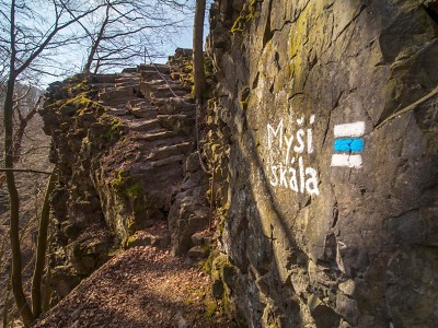 Myší skála - ještě než se začne po Kamenického stezce stoupat na úbočí vrchu Měděnec, dostanou se turisté za obcí Spálov ke skále, která se tyčí nad údolí Jizery a poskytuje rozhled do kraje, na sbíhající se údolí a na soutok Kamenice s Jizerou. Jmenuje se Myší skála - též nazývána Mišek, Mniší skála nebo Myšková skála - a nachází se na ní asi nejznámější vyhlídka zdejšího kraje. Skála s okolním pozemkem je od roku 1926 ve vlastnictví Klubu českých turistů a ten na ní v roce 1926 otevřel turistickou vyhlídku.