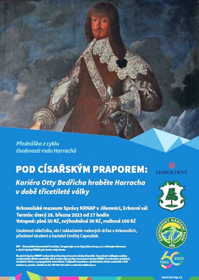 V návaznosti na vyhlášení Roku Harrachů Národním památkovým ústavem se konají akce Krkonošském muzeu v Jilemnici. První z cyklu přednášek Osobnosti rodu Harrachů s názvem Pod císařským praporem: Kariéra Otty Bedřicha hraběte Harracha v době třicetileté války se koná v úterý 28. března 2023 od 17 hodin v Erbovním sále muzea.