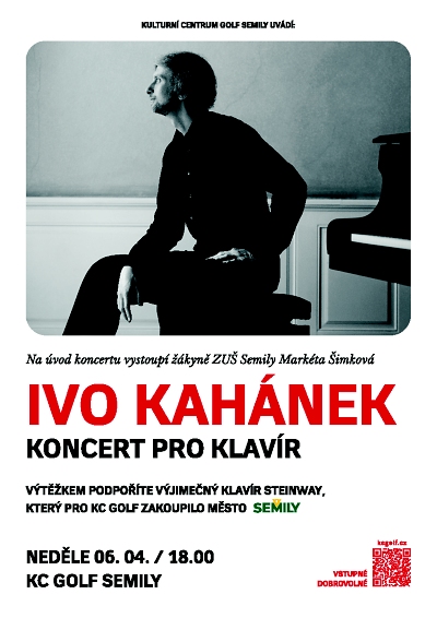 Kahánkova virtuózní technika, hluboké porozumění hudbě a schopnost vyjádřit širokou škálu emocí z něj činí umělce světové úrovně. Na úvod koncertu vystoupí žákyně ZUŠ Semily Markéta Šimková. Vstupné na koncert bude dobrovolné. Výtěžkem podpoříte výjimečný nástroj klavír Steinway.