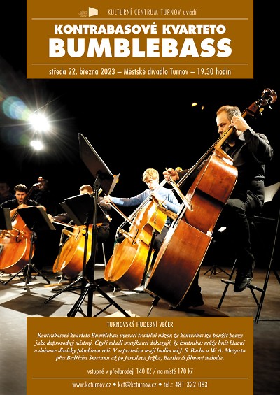 Kontrabasové kvarteto Bumblebass vyvrací tradiční názor, že kontrabas lze použít pouze jako doprovodný nástroj. Přesvědčit se o tom můžete ve středu 22. března v Městském divadle Turnov.
