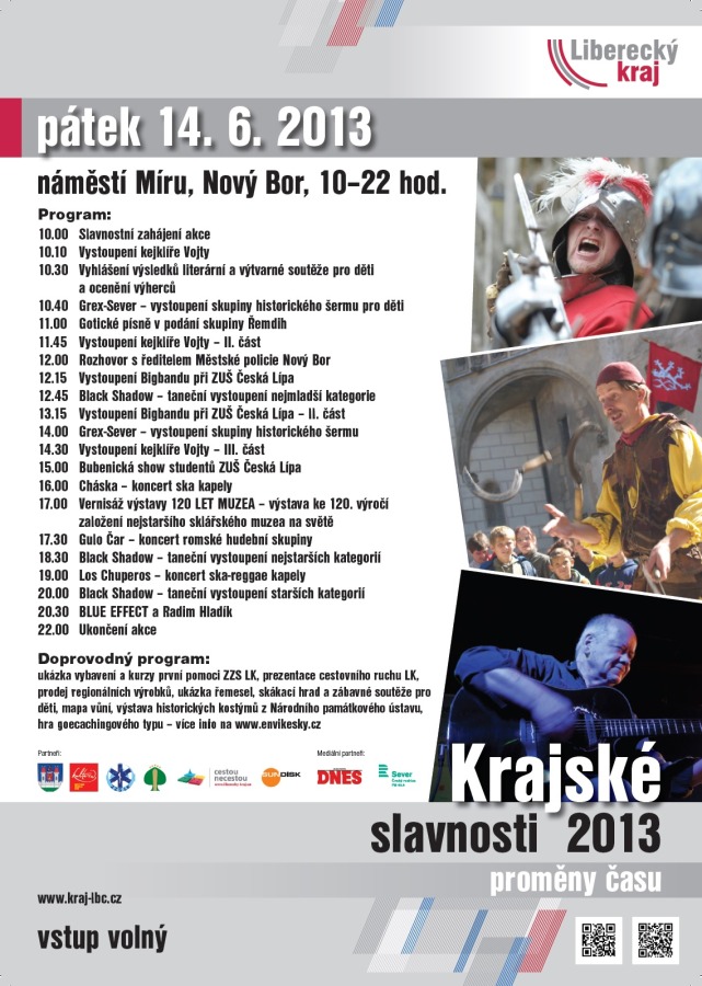 Tradiční Krajské slavnosti Libereckého kraje se letos budou konat v Novém Boru. V pátek 14. června 2013 od 10 do 22 hodin bude v prostoru zdejším náměstí Míru připravený bohatý kulturní a zábavný program pro děti i dospělé. Hlavním hostem bude kapela Blue Effect s Radimem Hladíkem.