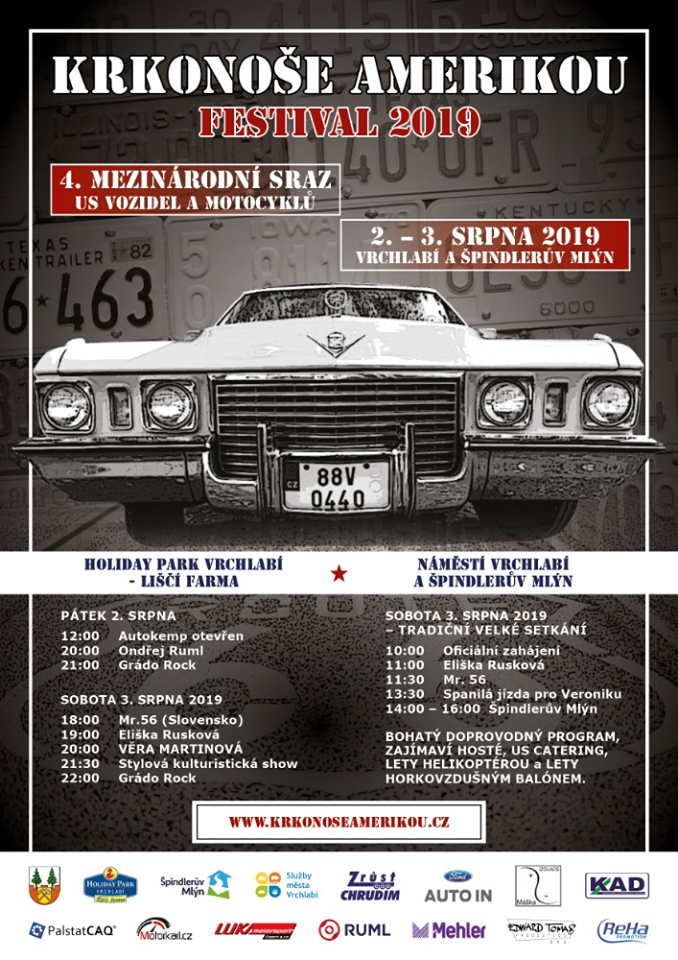 Již počtvrté si nadšenci amerických křižníků dali dostaveníčko jménem Krkonoše Amerikou ve Vrchlabí, které po dva dny svým kulturním programem bavilo diváky v Holiday Park Liščí farma v blízkosti Vrchlabí, známém to městě především místní automobilkou.