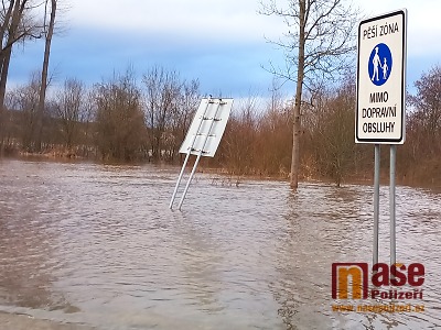 Rozvodněná Jizera v Bakově nad Jizerou: