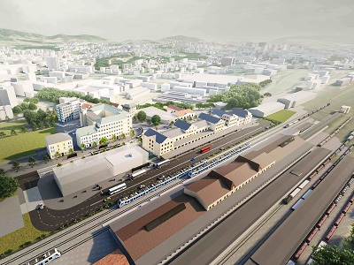 - vybudování obslužné komunikace včetně související infrastruktury a kvalitního veřejného prostoru před a za hlavní budovou železničního nádraží