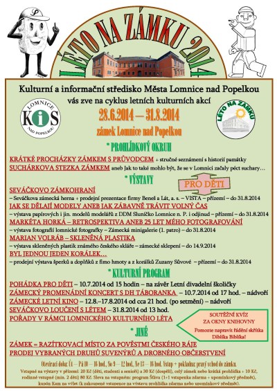 Také pro letošní turistickou sezonu připravilo Kulturní a informační středisko na zámku v Lomnici nad Popelkou další ročník letního cyklu akcí Léto na zámku 2014, který se v loňském roce setkal s velkým úspěchem, protože jeho celková návštěvnost činila na 1200 lidí.