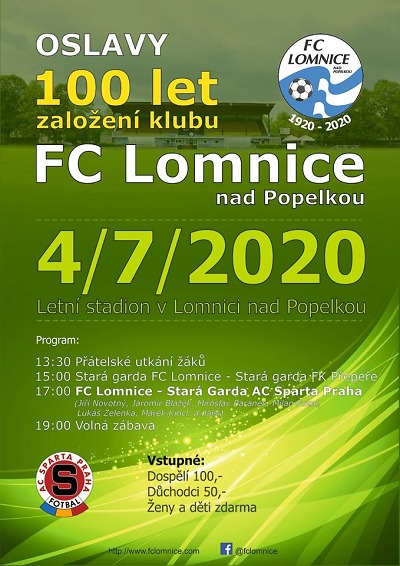 V tomto roce slaví oddíl kopané FC Lomnice 100 let od svého založení, příznivci kopané jsou zváni na oslavy založení klubu, které se budou konat na Letním stadionu Lomnice nad Popelkou v sobotu 4. července 2020 a představí se na nich i staré gardy Přepeř a pražské Sparty. Kromě toho přinášíme i přehled přípravy lomnického týmu.