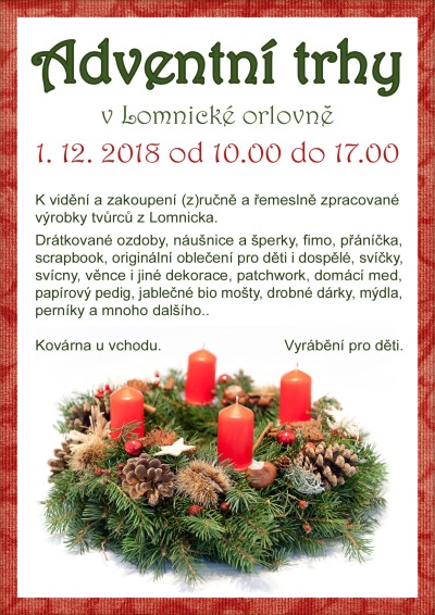 Řemeslnické výrobky pořídíte na adventním trhu v lomnické orlovně