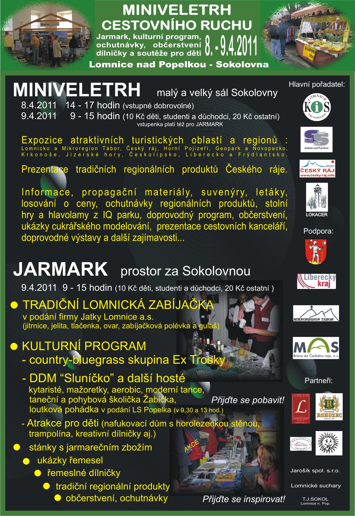 V pátek 8. a v sobotu 9. dubna 2011 proběhne v budově lomnické sokolovny již 8. ročník Miniveletrhu cestovního ruchu. Sál sokolovny bude po oba dny hostit prezentaci turistických regionů a oblastí Libereckého kraje.