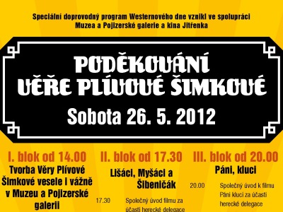 Akce Poděkování Věře Plívové-Šimkové vznikla jako doprovodná součást Westernového dne v Semilech a její program je rozdělen do tří bloků. První z nich začíná již ve 14 hodin v Muzeu a Pojizerské galerii a bude mapovat nejstarší tvorbu režisérky Věry Plívové-Šimkové. Promítány budou například filmy Chlapci, zadejte se; Než se rozhrne opona a Láska ve třech podobách, přičemž tento blok uvede filmový historik Pavel Taussig a hostem muzea bude také filmová dramaturgyně a osobní blízká spolupracovnice Marcela Pittermannová.