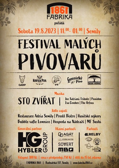 Skvělé pivo, jídlo, hudba, a hlavně jedinečná atmosféra. To je ve zkratce Festival malých pivovarů ve FABRICE 1861. Již třetí ročník se uskuteční v sobotu 19. srpna od 11 hodin v industriálním areálu semilské FABRIKY 1861, neboli v tzv. Semilském Versailles.