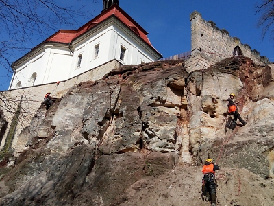 „V rámci prací budou stávající vzniklé převisy, kaverny a nestabilní bloky sanovány pomocí podezdívek, které budou zároveň působit jako ochrana proti vodní a mrazové erozi. Následně bude provedena i vyzdívka puklin. Skalní struktury, které se odlučují od skalního masívu, budou stabilizovány systémem svorníků. Po provedení všech souborů prací bude provedena instalace geotechnického monitoringu, který bude sledovat stabilitu a pohyby bloků skalního masívu," vysvětlila Gruberová.
