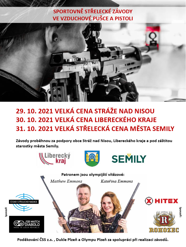 Český střelecký svaz - Liberecké krajské sdružení včele s předsedou Petrem Hrbkem, společně s SSK Semily pořádají ve Sportovním centru v Semilech 2. ročník závodů ve střelbě ze vzduchových zbraní. V pátek 29. října se koná Velká cena Stráže nad Nisou, v sobotu 30. října Velká cena Libereckého kraje a v neděli 31. října Velká cena města Semily.