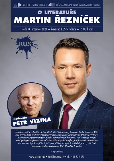 Český novinář a reportér Martin Řezníček, v letech 2012-2017 zahraniční zpravodaj České televize v USA a od června 2018 moderátor hlavní zpravodajské relace České televize Události představí ve středu 8. prosince při besedě v Turnově svou knihu Rozpojené státy: Amerika nejen televizní kamerou. V čem jsou vlastně Spojené státy výjimečné?