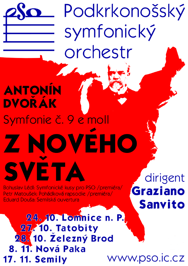 Podzimní koncerty Podkrkonošského symfonického orchestru jsou již v regionu tradicí. V rámci vrcholících oslav Roku české hudby však tentokrát toto více než sedmdesátičlenné těleso pod vedením dirigenta Graziana Sanvito připravilo pro své publikum dosud nejnáročnější program své historie. Jeho první část je věnována současné české klasické hudbě. Úvodem orchestr připomene Semilskou ouverturu, kterou mu před dvěma lety věnoval pražský hudební skladatel doc. Eduard Douša. Následně uvede premiéru Pohádkové rapsodie semilského skladatele Petra Matouška a premiéru až téměř „jazzových" symfonických kusů pro PSO od ředitele ZUŠ v Turnově, pana Bohuslava Lédla. Vrcholem programu pak bude Novosvětská symfonie (č. 9 e moll) Antonína Dvořáka.
