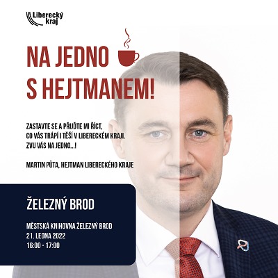 Hejtman Martin Půta pokračuje ve svých cestách po kraji. V pátek 21. ledna zavítá do Železného Brodu. Hejtmanský den začne setkáním se starostou Františkem Lufinkou, který provede Martina Půtu celým programem. Ten zakončí tradiční beseda s občany.