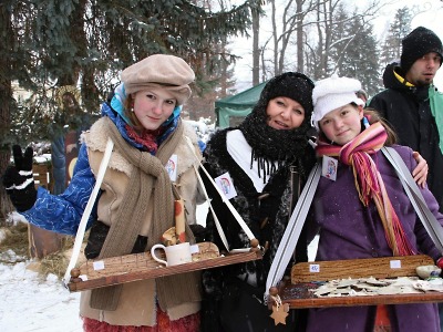 Všechny zaujal průvod historických lyžníků, který po představení na podiu mířil do zámeckého parku na 6. ročník Lyžeckých závodů postaru. Dobové oblečení a lyže bez hran s řemínkovým vázáním připomínaly lyžařská klání našich pradědů. Vždyť některé lyže pocházely z období okolo roku 1930. Více o tom v samostatném článku.