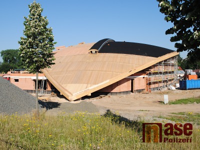 Poměrně rychle postupuje v červnu a červenci stavba zimního stadionu v turnovské Maškově zahradě. Již je proinvestováno přes 20 milionů korun bez DPH a stále platí říjnový termín otevření.