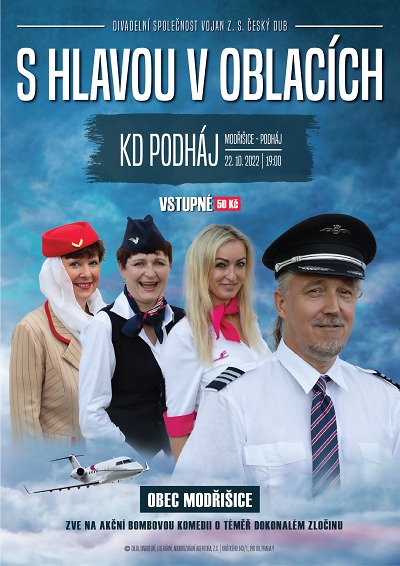 Před dva a půl rokem představili členové divadelního spolku Vojan z Českého Dubu divákům konverzační komedii Já jsem ty, miláčku! V době největší krize zkoušeli novu hru online a již v sobotu 22. října dorazí do KD Podháj v obci Modřišice s akční komedií s názvem S hlavou v oblacích.