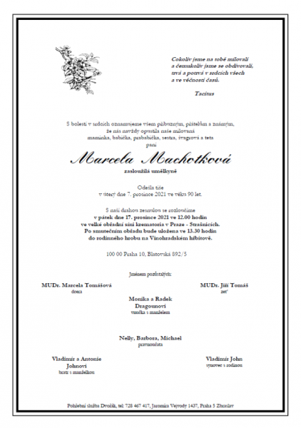Smuteční oznámení Marcela Machotková