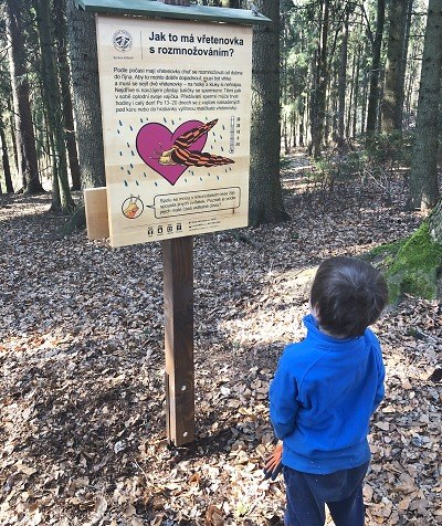 Na každé zastávce je dřevěná informační tabule a také jednoduchý tematický herní prvek (hra, hádanka nebo kvíz), který přiblíží vřetenovku i laikům. Na poslední zastávce je 100x zvětšená vřetenovka, se kterou se děti mohou vyfotografovat a snímek sdílet s kamarády. Některé herní prvky vyžadují spolupráci rodičů a dětí.