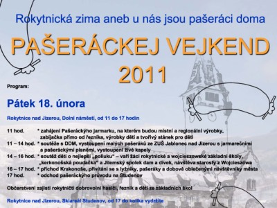 V pátek a sobotu 18. a 19. února 2011 se v Rokytnici nad Jizerou uskuteční Pašeráckej vejkend. Bohatý program začíná už v pátek v 11 hodin a potrvá s přestávkami až do sobotního večera.