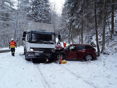 Již ve čtvrtek dopoledne zasahovali hasiči u dopravní nehody osobního a nákladního automobilu s návěsem v Mníšku na Liberecku. Hasiči provedli protipožární opatření. Na místě spolupracovali se Zdravotnickou záchrannou službou LK. Komunikace byla na několik hodin uzavřena.
