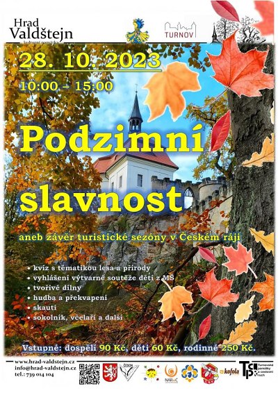 Během slavnosti se návštěvníci dostanou do celého hradu, včetně hlavních interiérů, kde budou k dispozici průvodci. Podzimní slavnost, která se uskuteční za podpory Města Turnova, zakončí turistickou sezonu v Českém ráji, která byla zahájena v sobotu 29. dubna tradiční akcí Český ráj dětem. Hrad Valdštejn se po konci října návštěvníkům uzavře a následující týdny budou věnovány přípravám adventního a vánočního programu, který bude letos zpestřen řadou novinek. Více na www.hrad-valdstejn.cz.