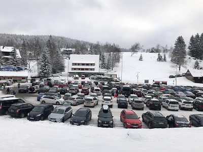 Parkoviště v Bedřichově jsou plně obsazená, policie uzavřela silnice