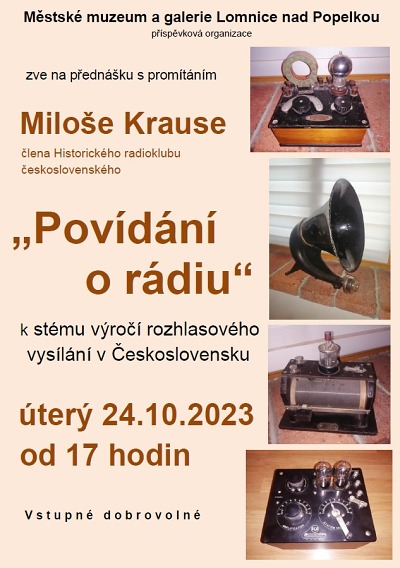 Druhá přednáška podzimního muzejního cyklu v Lomnici nad Popelkou s názvem Povídání o rádiu - k stému výročí rozhlasového vysílání v Československu, se koná v úterý 24. října od 17 hodin.