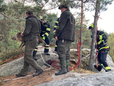 Premiérová hasičská záchrana divočáků uvázlých ve skalách