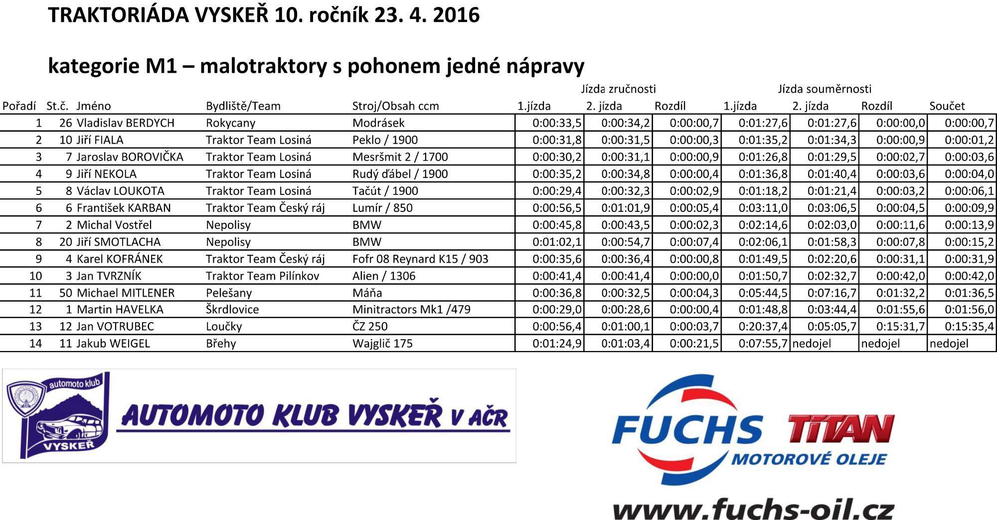 Plakát Fuchs Oil Traktoriáda | Výsledky M1 | Výsledky M2 | Výsledky T3 | Výsledky T4 | Výsledky Ženy | Výsledky Šlapací traktůrky