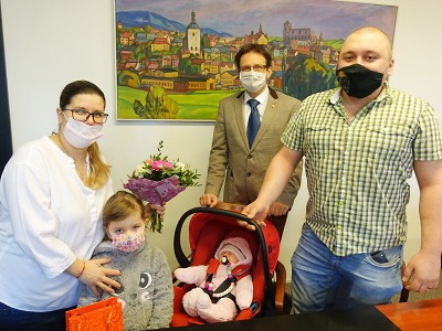 Hejtman obdaroval novorozence. Rodiče Marianky dali peníze na charitu