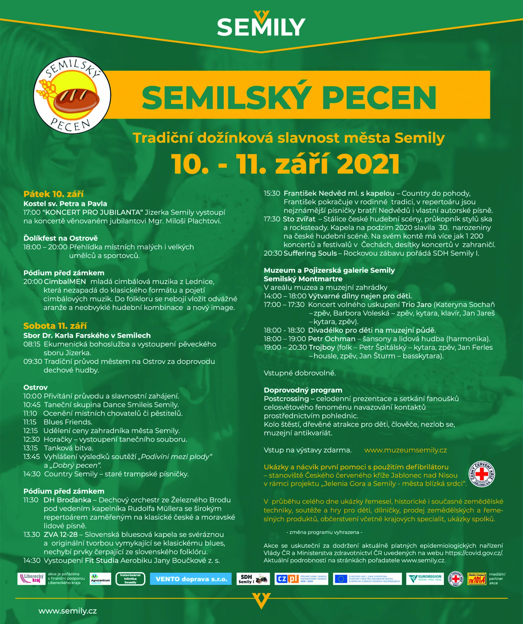 Upozornění: Akce se uskuteční za dodržení aktuálně platných epidemiologických nařízení Vlády ČR a Ministerstva zdravotnictví ČR. Sledujte proto stránky pořadatele www.semily.cz, kde se dozvíte aktuální podrobnosti. Současně prosíme všechny účastníky akce o dodržování platných protiepidemických opatření uvedených na webu https://covid.gov.cz/
