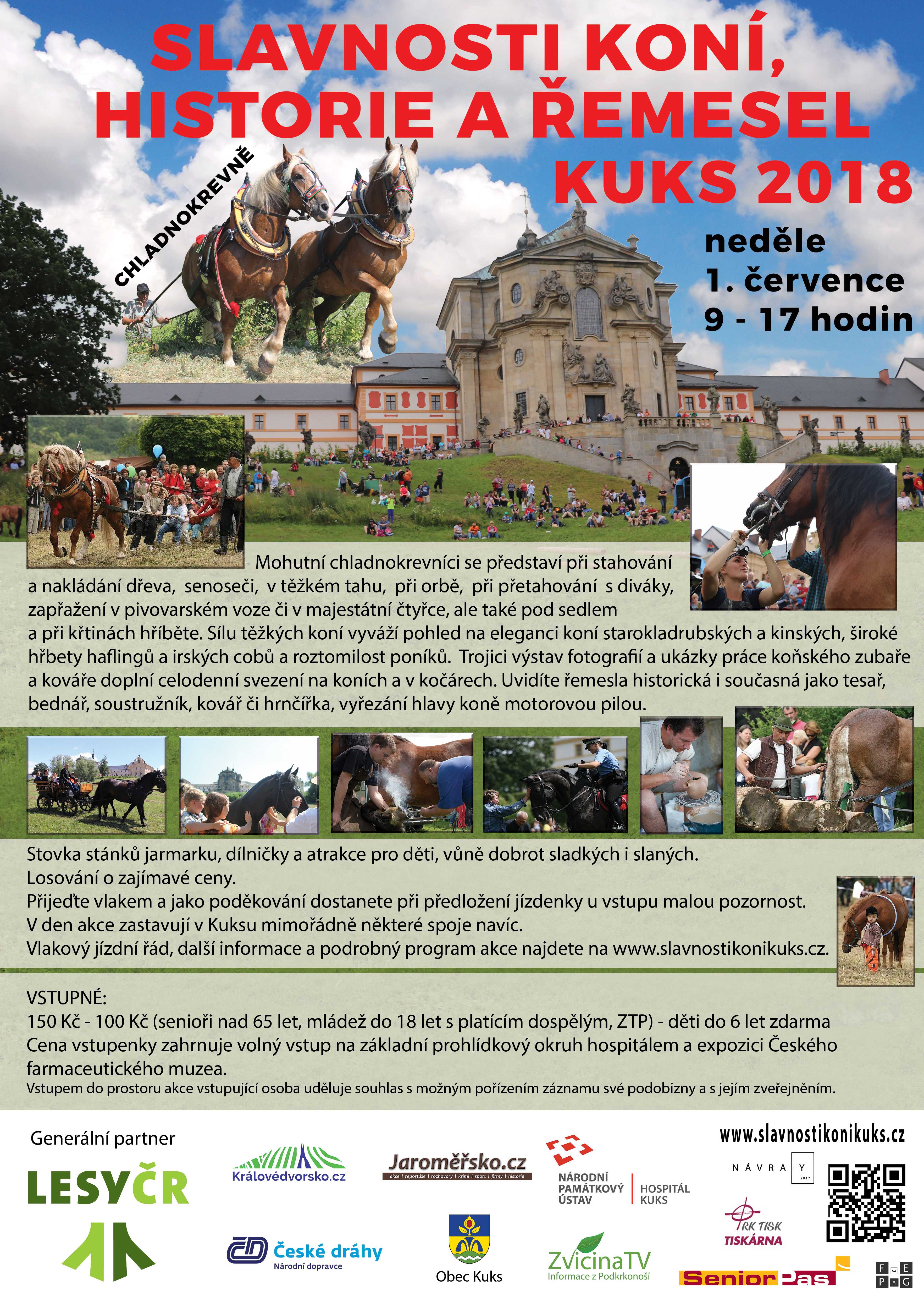 Plakát Slavnosti koní, historie a řemesel v Kuksu 2018 | Slavnosti koní - jízdní řád vlaků