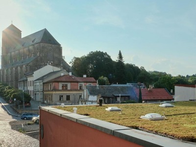 Městu se podařilo získat dotaci na realizaci zelené střechy na budově pasáže pod historickou radnicí, kde už druhým rokem funguje Ulička řemesel. Instalace zeleně proběhla na sklonku minulého roku, nyní střecha ožívá. Zdá se, že rozchodníkům, které jsou jejím hlavním osazenstvem, se začíná dobře dařit.