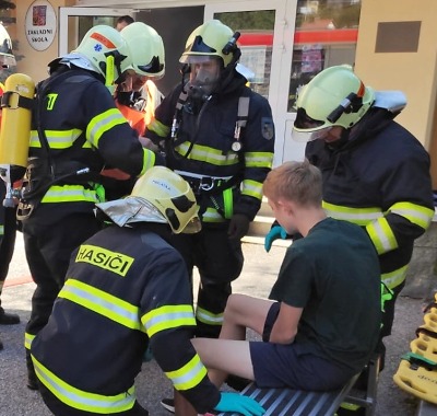 Dále šlo o spolupráci při evakuaci žáků a zaměstnanců školy a prověření způsobu evidence evakuovaných osob na místě shromáždění. Pro reálnost podmínek při požáru byl k zakouření objektů použit vyvíječ studeného kouře.