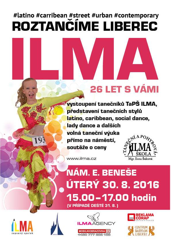 Taneční a pohybová škola ILMA připravuje na 30. srpna od 15 do 17 hodin akci Roztančíme Liberec, kde představí různé taneční styly a pozve příznivce tance na mistrovství světa.