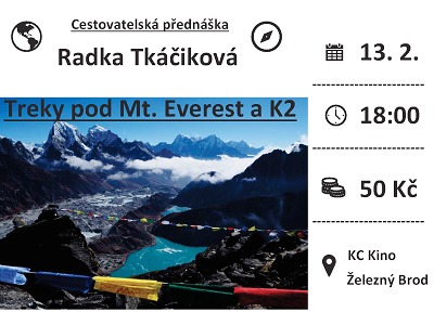Přednášku pořádá Turistické informačním centru Železný Brod, tel: 484 353 333 v prostorách KC Kino v pondělí 13. února od 18 hodin. Vstupné 50 Kč.