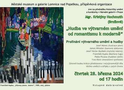 V pořadí třetí přednášku nazvanou Hudba ve výtvarném umění od romantismu k moderně pořádají v lomnickém muzeu. Uskuteční se ve čtvrtek 28. března od 17 hodin a pořadem provede Kristýna Hochmuth (Brožová) - historička umění, kurátorka sbírky grafiky a kresby v Národní galerii v Praze, editorka.