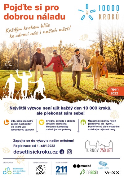 Cílem Výzvy 10 000 kroků je vrátit chůzi do našich běžných dnů. V říjnu 2022 se znovu otevře možnost na virtuální pouti projít Česko a přímo v Turnově i v okolí objevit nové trasy na vycházky.