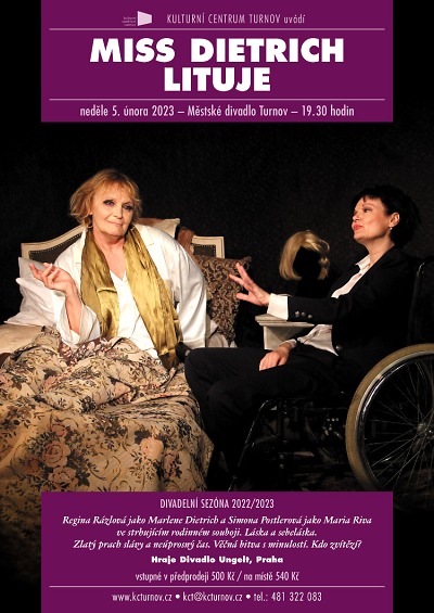 Regina Rázlová jako Marlene Dietrich a Simona Postlerová jako Maria Riva ve strhujícím rodinném souboji. Láska a sebeláska. Zlatý prach slávy a neúprosný čas. Věčná bitva s minulostí. Kdo zvítězí?
