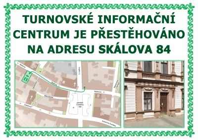 Regionální turistické informační centrum Turnov má od 2. listopadu 2020 novou adresu. Najdete ho ve Skálově ulici, číslo popisné 84 (dříve v této budově sídlila část Městského úřadu Turnov). Z důvodu vládních nařízení a prodloužení nouzového stavu je zatím RTIC pro veřejnost uzavřeno. Dotazy proto vyřizuje telefonicky a e-mailem.