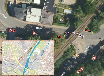 V místě bude instalováno dopravní značení, provoz bude řízen semafory. Světelná signalizace bude viditelná i ve směru výjezdu od ulice Nad Perchtou. Více také ve vyhlášce na úřední desce městského úřadu.