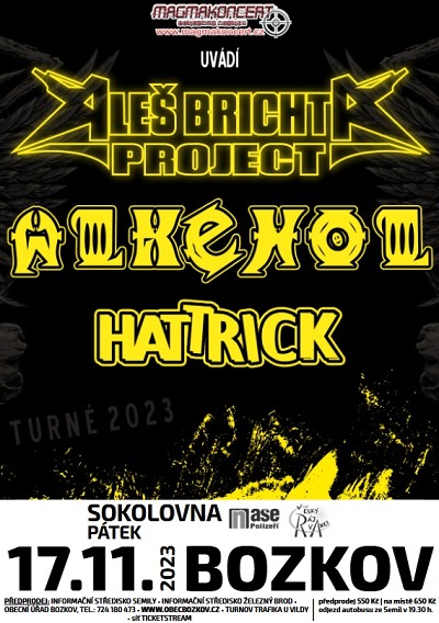 V bozkovské sokolovně se koná ve sváteční pátek 17. listopadu od 20 hodin koncert kapely Alkehol, dále zahrají i Aleš Brichta project a Hattrick.
