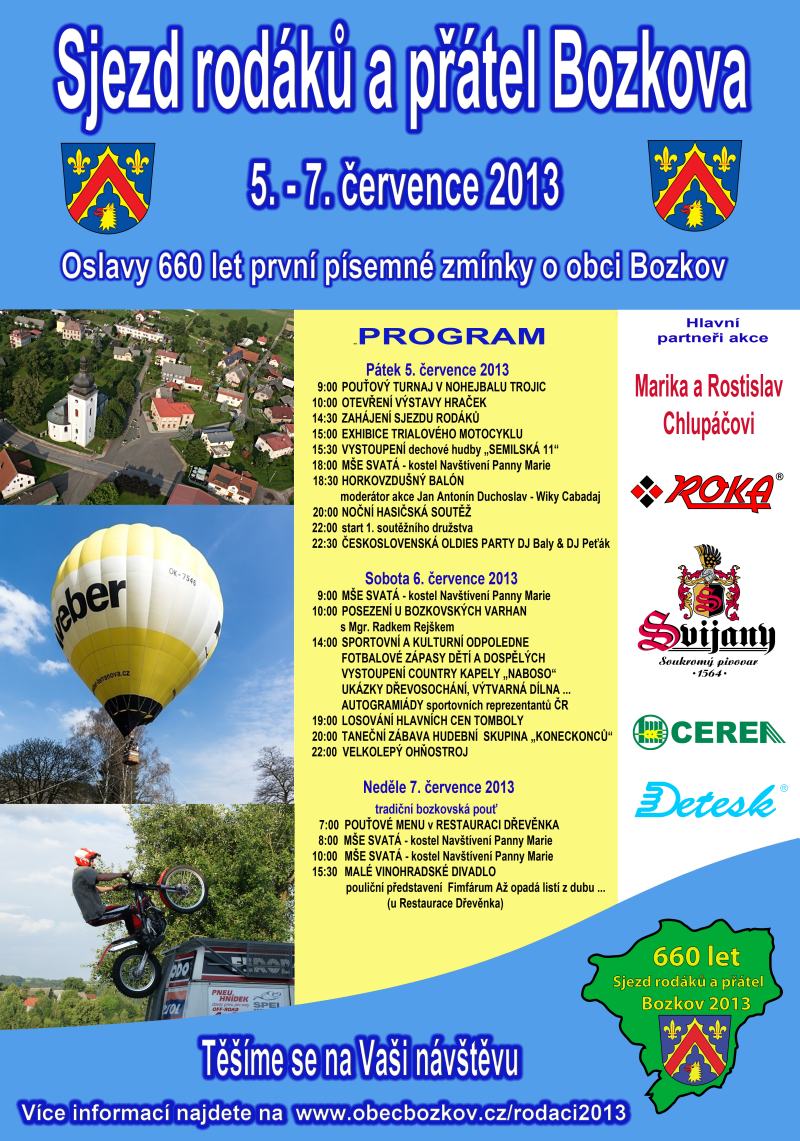 Podrobný program Sjezdu rodáků v Bozkově 2013: