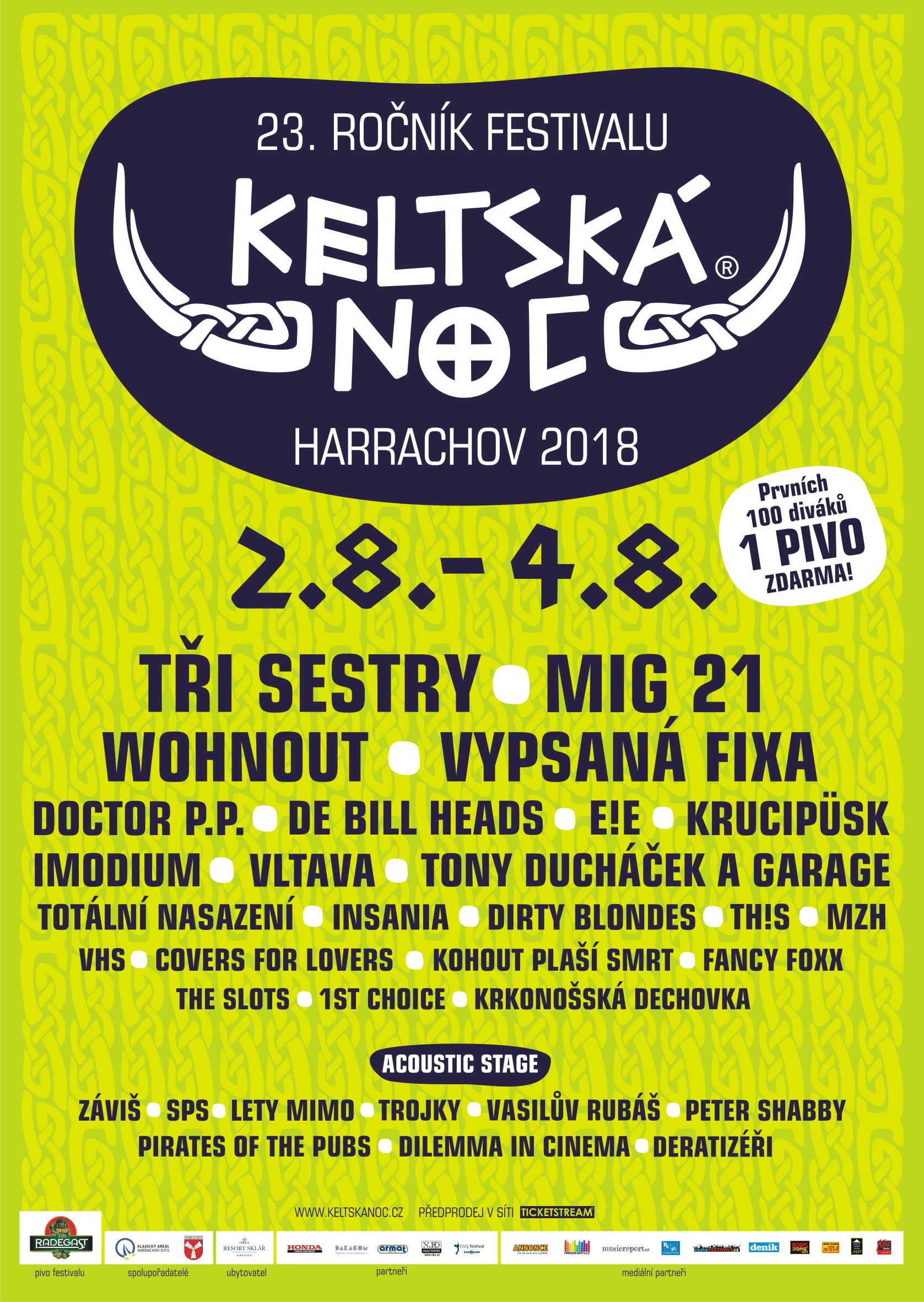 Acoustic stage si pro vás připravila: Lety mimo, SPS, Deratizéři, Vasiluv rubáš, Pirates of the Pubs, Trojky, Dillema in Cinema a kníže pornofolku Záviš.