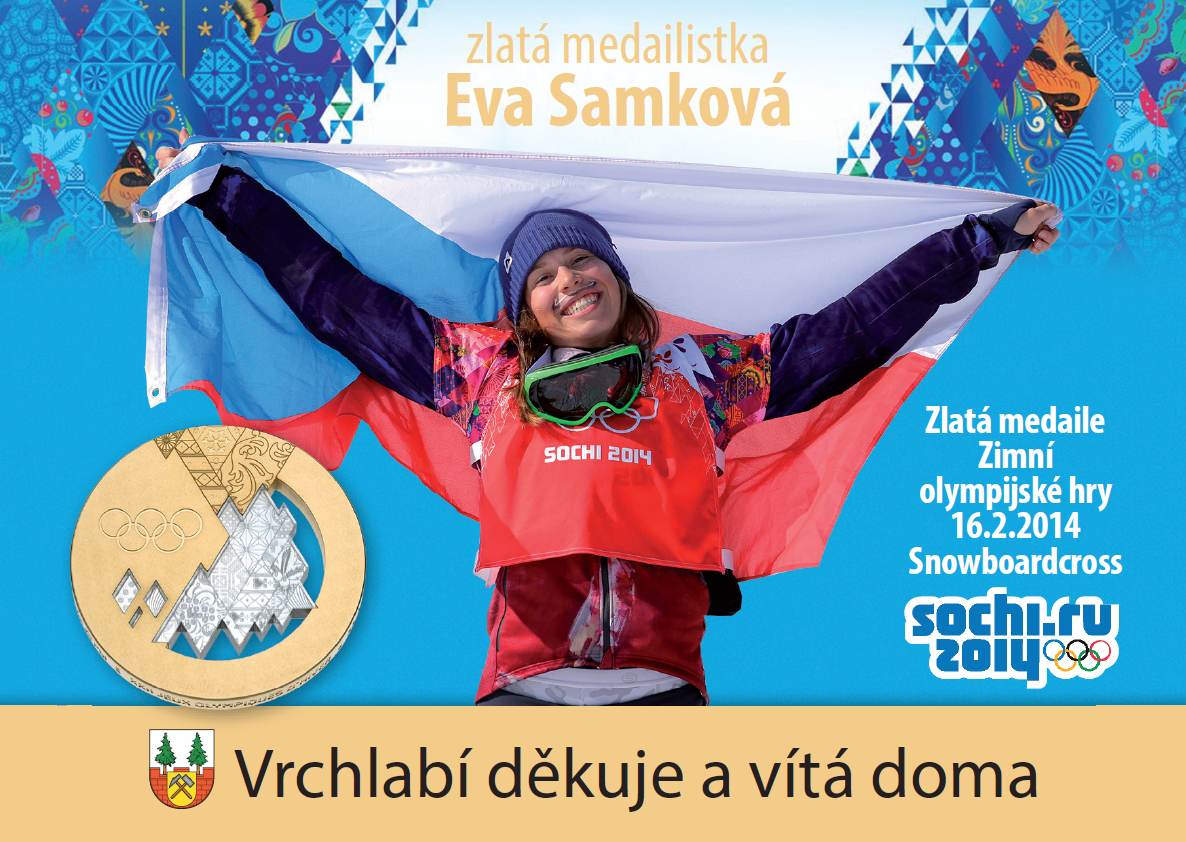 Podobně má probíhat i přivítání na druhé straně těsně za hranicemi okresu Semily. Eva Samková, která třetí únorovou neděli vybojovala na zimních olympijských hrách v Soči pro Českou republiku zlatou medaili ve snowboardcrossu, se ve středu 26. února vrátí do míst, kde se narodila a udělala své první krůčky. Podkrkonošské město Vrchlabí pro svou slavnou rodačku chystá na náměstí triumfální přivítání s autogramiádou. „Chceme Evě moc poblahopřát k životnímu úspěchu a poděkovat jí za to, že se díky němu dostalo do povědomí i město Vrchlabí," uvedl starosta města Jan Sobotka.