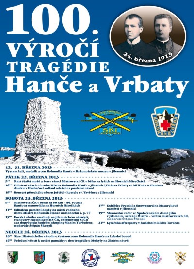 Na konci března si připomínáme 100. výročí tragedie Bohumila Hanče a Václava Vrbaty, ke které došlo 24. března 1913 při lyžařském závodě na Zlatém návrší a jeho okolí. Připraven je bohatý sportovní i kulturní program v Jilemnici a okolí.